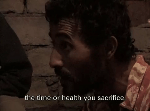 Si cette critique culturelle (déjà largement adressée par les études postcoloniales) est conduite beaucoup plus en sous-texte par la façon dont Occitane Lacurie se saisit du film de Daoud Aoulad-Syad (du début à la fin de Starouarzazate), elle nous invite rapidement à penser la matérialité de ce regard dominant (capitaliste, colonial, extractiviste) : le lourd processus par lequel ces lieux et ces paysages sont aliénés (c’est-à-dire dépossédés d’eux-mêmes) et les modalités techniques par lesquelles ils sont convertis en représentations.