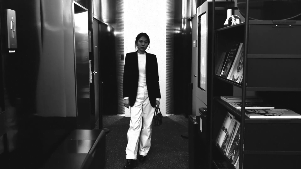 Ou « La Romancière, le Film et le Heureux Hasard« . Un peu avant l’écho autobiographique du film De nos jours…, avant le flou gracieux d’In Water (film radicalement beau et simple, à propos d’un tournage en équipe très réduite sur l’île de Jeju), Hong Sang-soo, Kim Min-hee et leurs collaborateurices proposaient un film plus largement porté sur la création et l’industrie cinématographique. Cet opus, teinté par les restrictions sanitaires, emprunt d’un sens comique et d’un certain art du malaise (les silences, les acoustiques creuses, les espaces vides, le tact peinant à poindre…), se joue des nouvelles architectures germant en périphérie de Séoul. Si la vue de la Hanam Union Tower (une tour panoramique ouverte en 2016) est obstruée par un contre-jour qui surexpose l’horizon (pied de nez hilarant et peut-être involontaire, ne révélant que l’intérieur étrange et vide de la tour), cela n’empêche pas le surgissement, dans le lointain, d’une silhouette mobile, et avec, la possibilité d’une promenade : ce hasard des rencontres, des lignes de fuites et des schémas se décalant auquel le film d’adonne. Kim Min-hee apparaît dans un autre de ses doubles, en tant qu’actrice admirée ayant arrêté sa carrière dont Lee Hye-young vient prendre la défense (elle qui avait, avant d’interpréter une romancière, elle-aussi joué une actrice ayant mis sa carrière en pause, dans In Front of your face / Juste sous vous yeux). Les lignes et les surfaces absurdes de la tour, du parc et des quartiers l’environnant augurent déjà d’une certaine destinée pour ces âmes poètes : faire germer dans cet horizon fade et gris, sous ce ciel blanc impénétrable (cramé par la caméra), quelques fleurs spontanées. Cette romancière qui entreprend la réalisation de son premier court-métrage semble à la fois avoir les idées claires (filmer le personnage de Kim Min-hee) et vagues, ouvertes… Contrairement à ce réalisateur dont elle a croisé la route (auteur de films commerciaux et de publicités) elle n’a pas besoin d’établir un plan de route très détaillé, ni de définir un registre permettant à son film de se produire (ce qui fausserait son geste !), elle est beaucoup plus libre : elle ne se soucie que des plus simples besoins (un opérateur, une actrice…) pour parvenir à une expression plus pure des sentiments et de l’idée qui la traversent. Le film, jusque-là marqué par l’échange d’une phrase en langue des signes ou par le surgissement d’une fillette perçant le voile d’une vitrine surexposée, vient à culminer dans un fragment amoureux d’une grâce absolue : ce cri étrange de la liberté révélant les couleurs de l’automne. Alors qu’on pense que cette collision a mis fin au film, Kim Min-hee surgit dans l’allée futuriste d’un cinéma déserté.